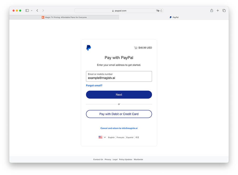 3.Log in to your PayPal account on the newly opened tab page and complete the payment.