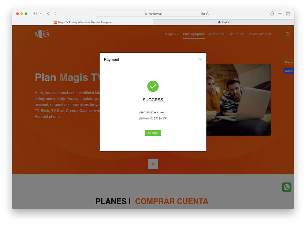 4.After successful payment, you will be redirected back to the website. Please note down the account and password that pop up on the page.